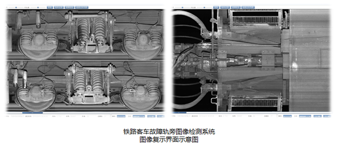 该系统是铁路车辆运行清静监控系统的主要组成部分,,,,,使用轨旁装置的高速相机,,,,,检测运行客车走行部、转向架、制动部件、车端毗连及车体下部悬吊件等可视部位图像,,,,,实时传输至室内监测终端举行剖析,,,,,并使用人工检测发明运行车辆异常情形并报警。。。